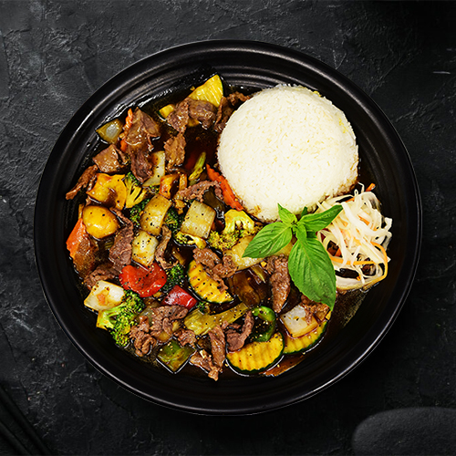 Cơm Bò Sốt Tiêu Đen - Restované Hovězí se Černým Pepřem, Rýže