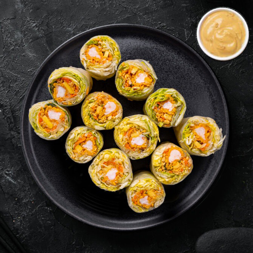 Netradiční rolka s krevetou nebo krevetou v tempuře nebo hovězím masem nebo tofu a rýžové nudle a čerstvou zeleninou. Kreveta nebo krevetou v tempuře nebo hovězím masem nebo tofu , rýžové nudle, mrkev, ředkev, ledový salát, koriandr. Podáváme s domácí chilli majonézou.. Určeno k okamžité spotřebě.