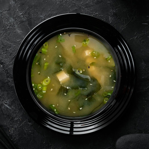 Pasta ze sojových bobů, losos, jarní cibulka,řasy