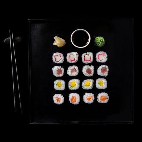 Sushi set obsahuje 16 ks – 4x Maki losos (4), 4x Maki tuňák (4), 4x Maki avokádo, 4x Maki krabí tyčinka (1, 2, 3, 4, 6). Podáváme se sojovou omáčkou (1, 6), wasabi a zázvorem. Složení: sushi rýže, losos, tuňák, avokádo, krabí tyčinka, nori řasa. Určeno k okamžité spotřebě.