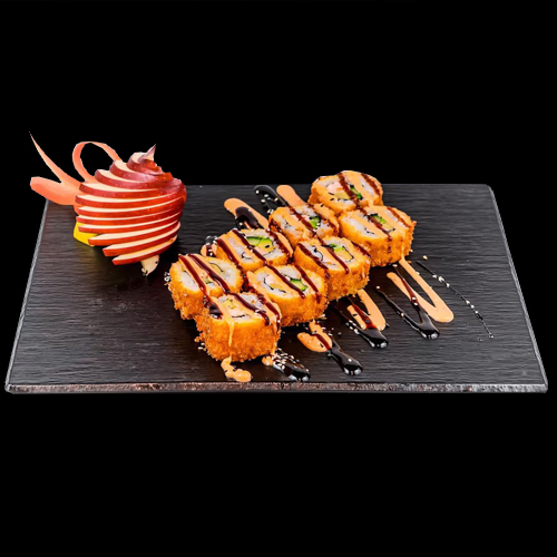 Sushi rýže, losos, tuňák, okurka, nori řasa, tempura (1,4). Podáváme se sójovou omáčkou (1,6), wasabi a zázvorem. Určeno k okamžité spotřebě.